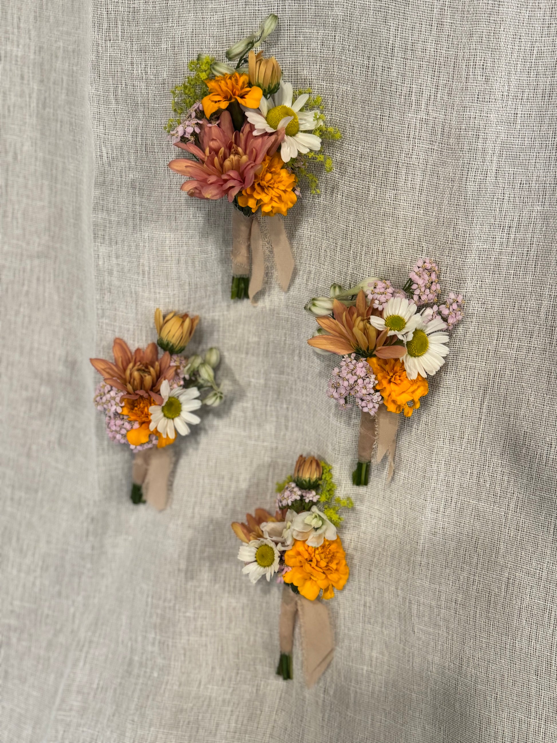 Veldu litaþema og/eða blómtegundir í skilaboðum, einnig lit og tegund á borða. Taka fram tilefni og ef barmblómið á að vera í stíl við aðrar skreytingar.