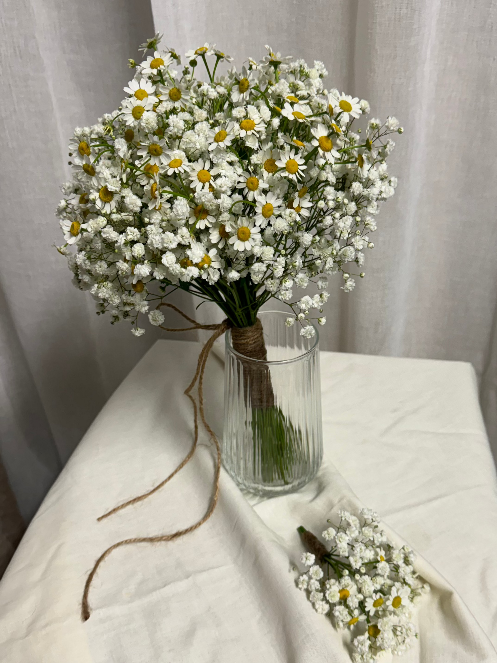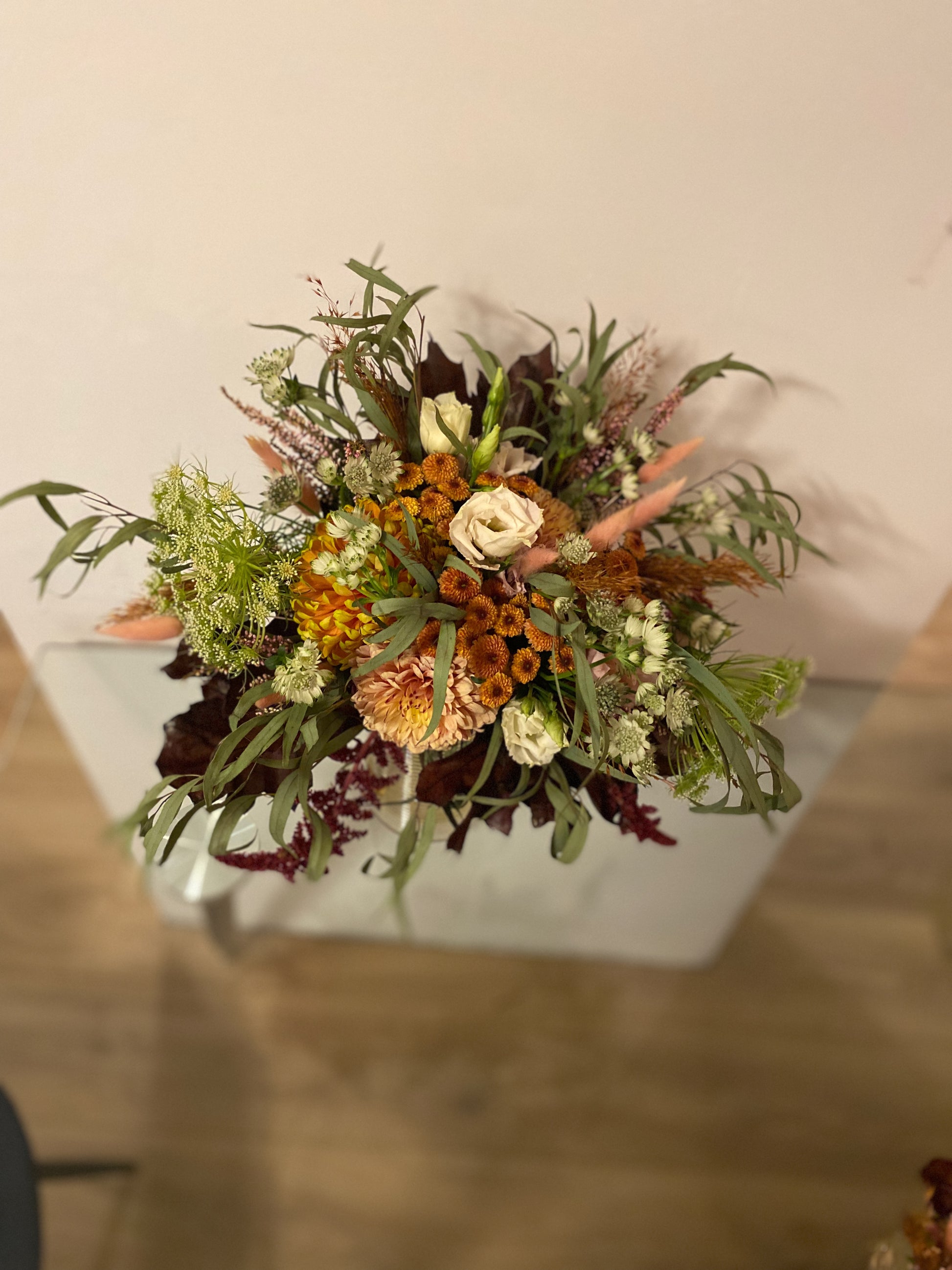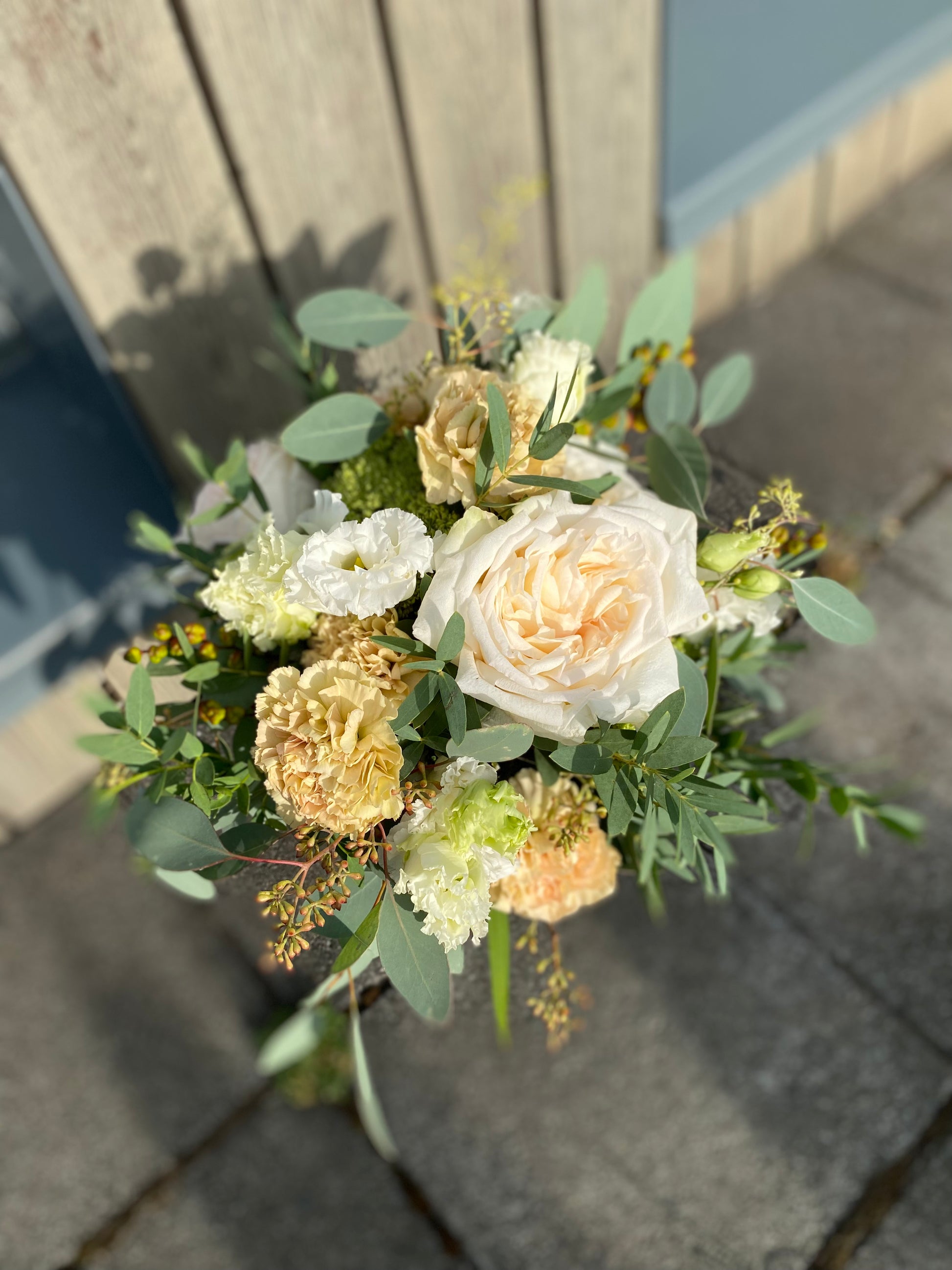 Hver skreyting er einstök og gerð úr lifandi blómum sem eru árstíðabundin.
