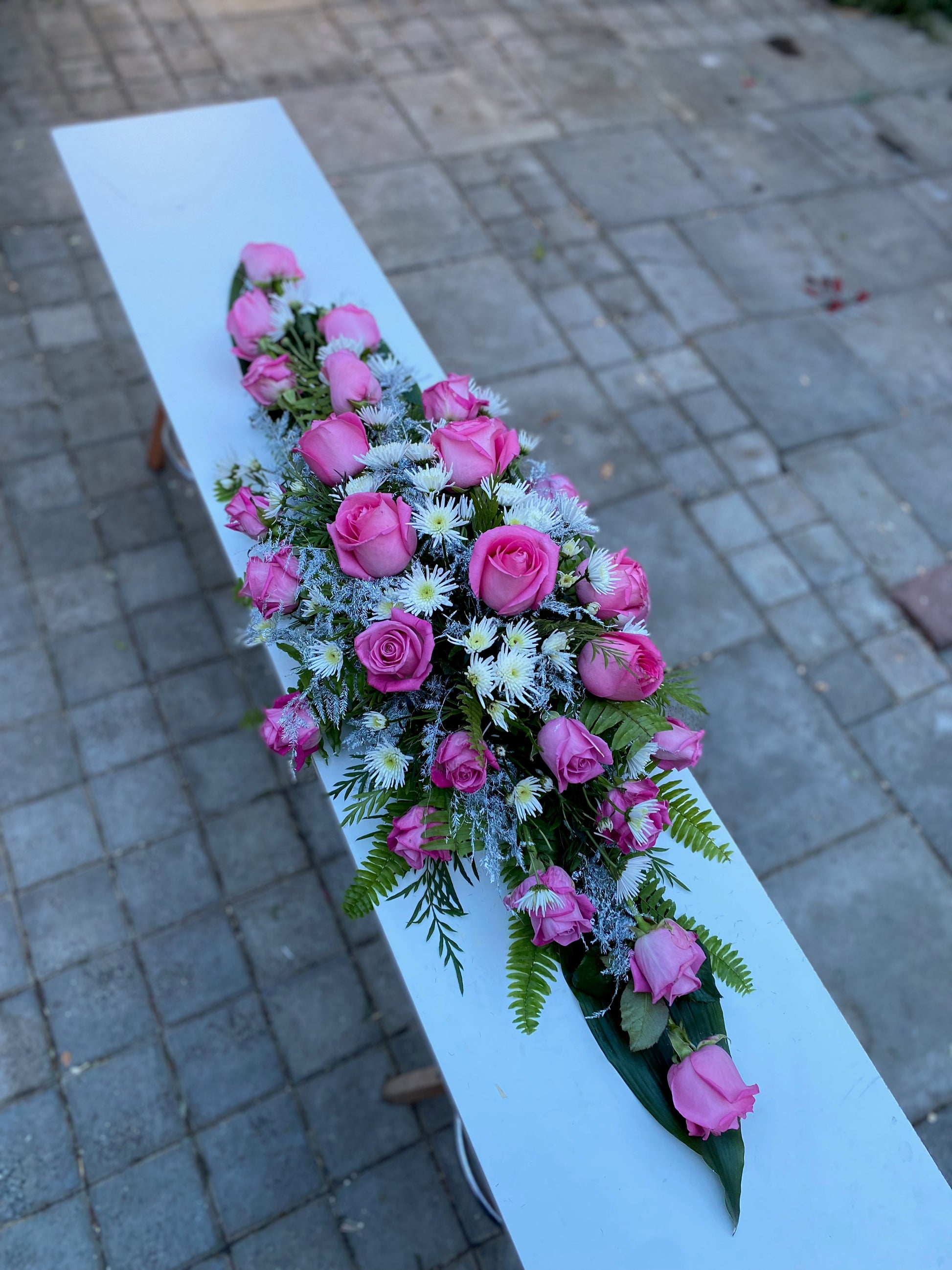 Hver skreyting er einstök og gerð úr lifandi blómum sem eru árstíðabundin.